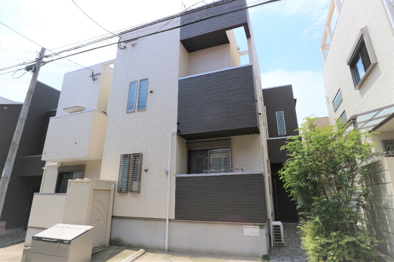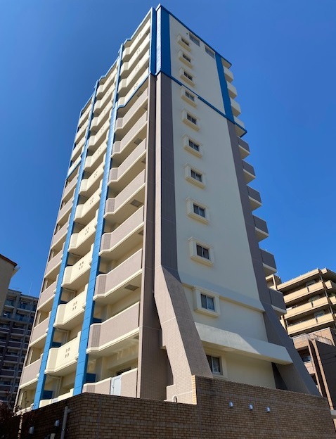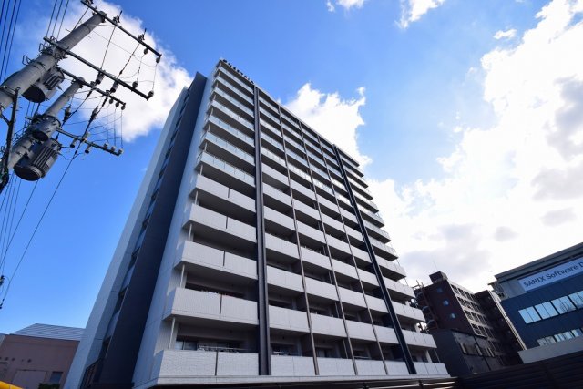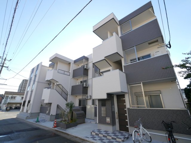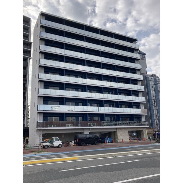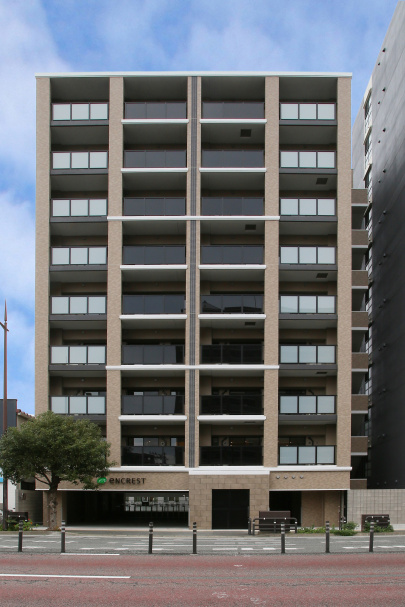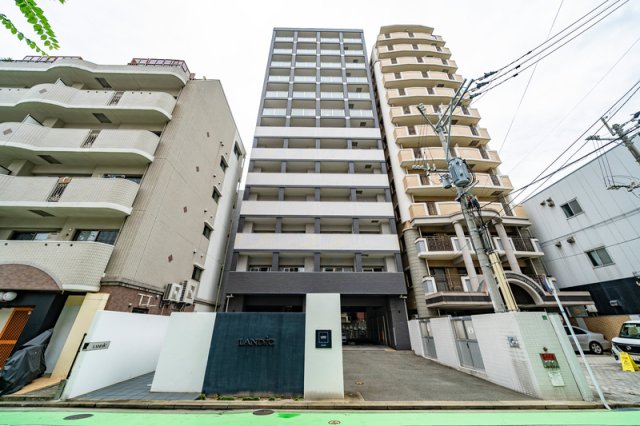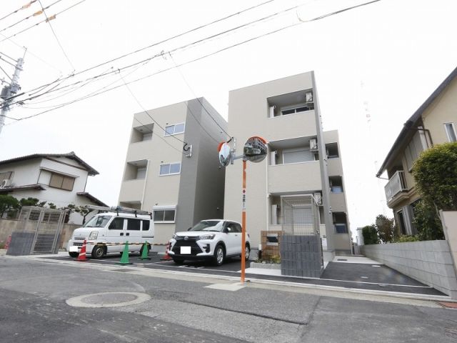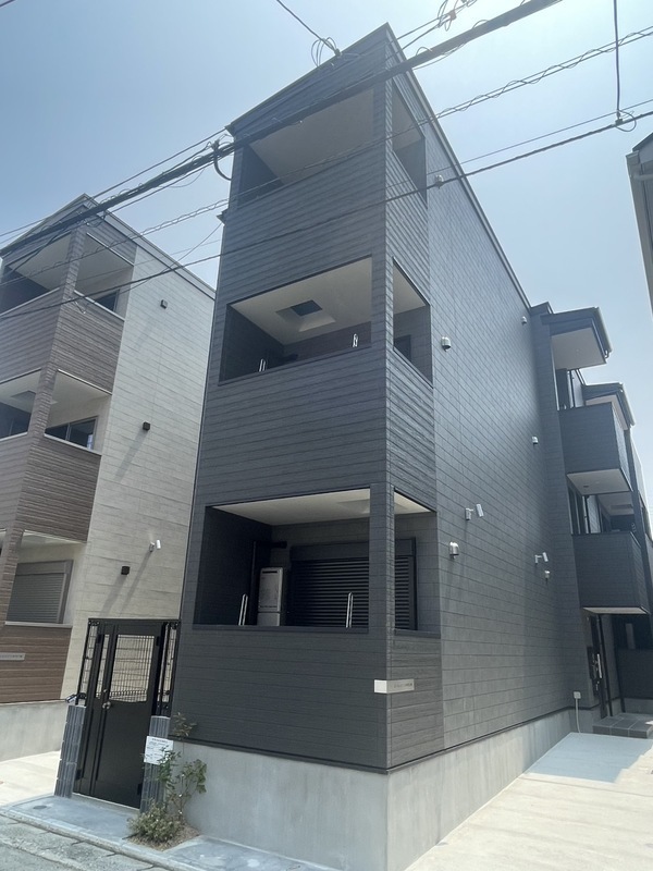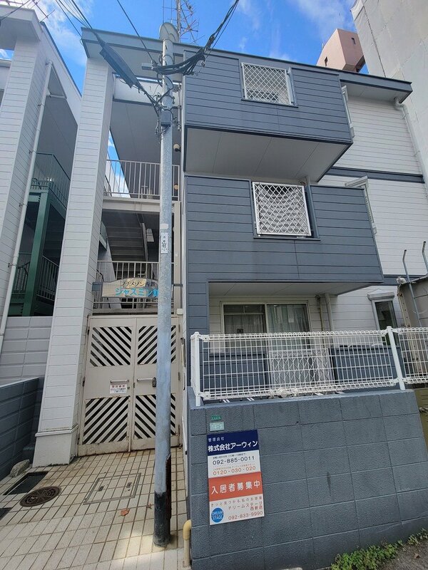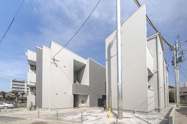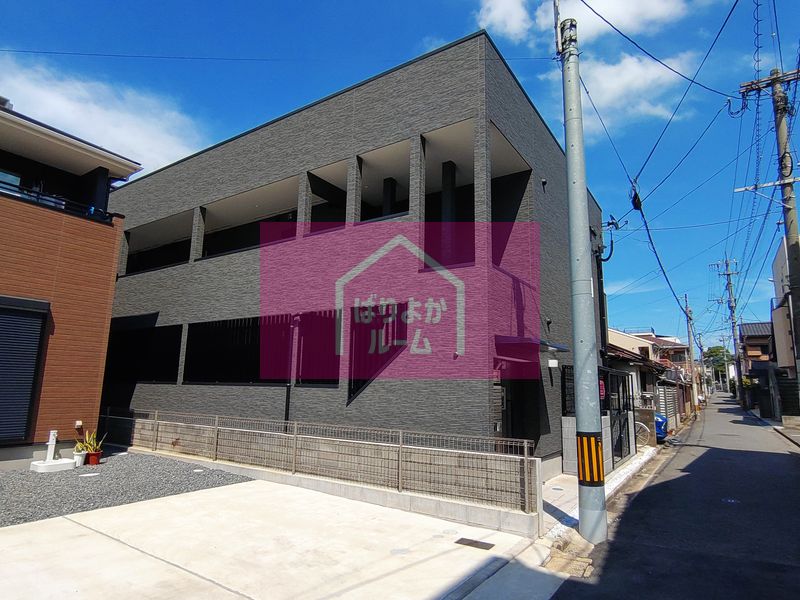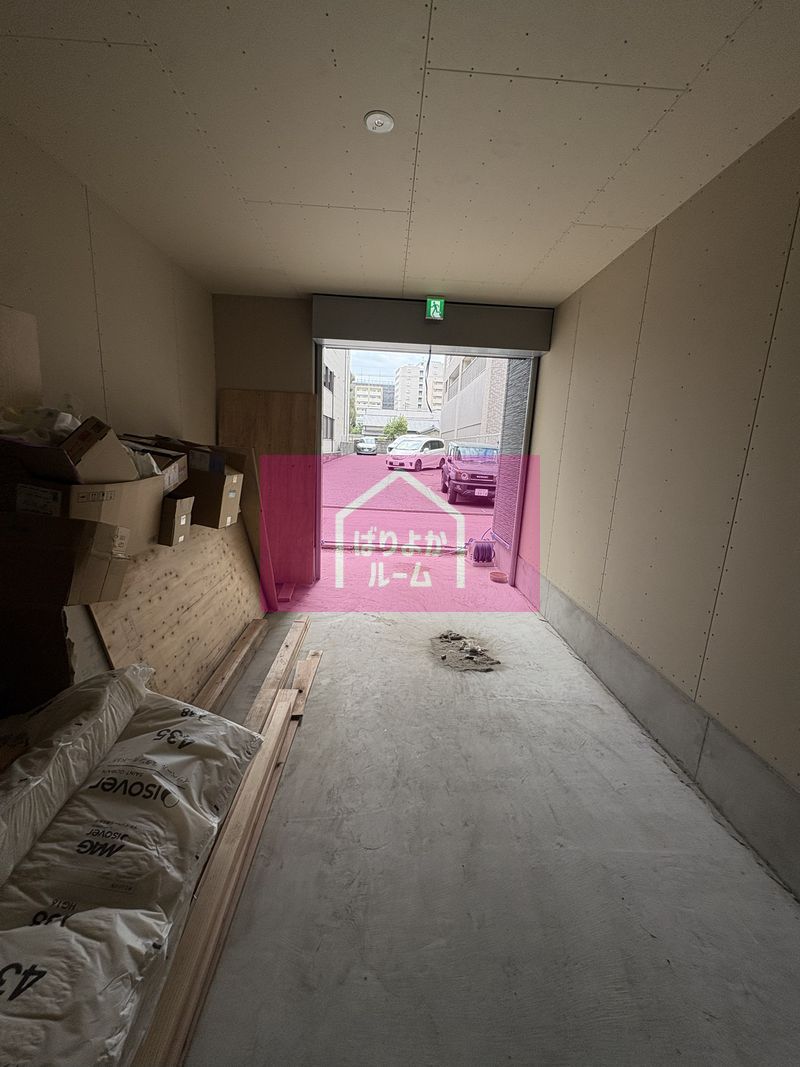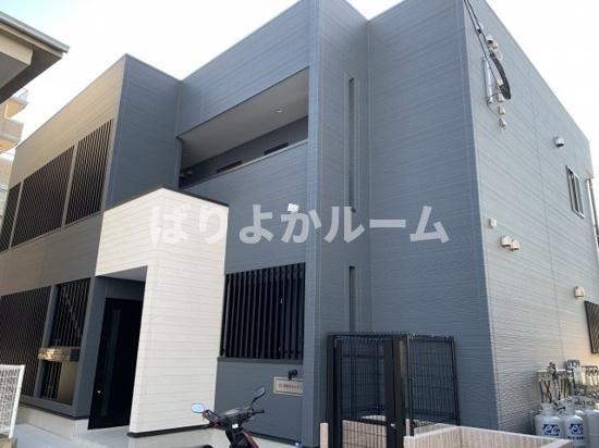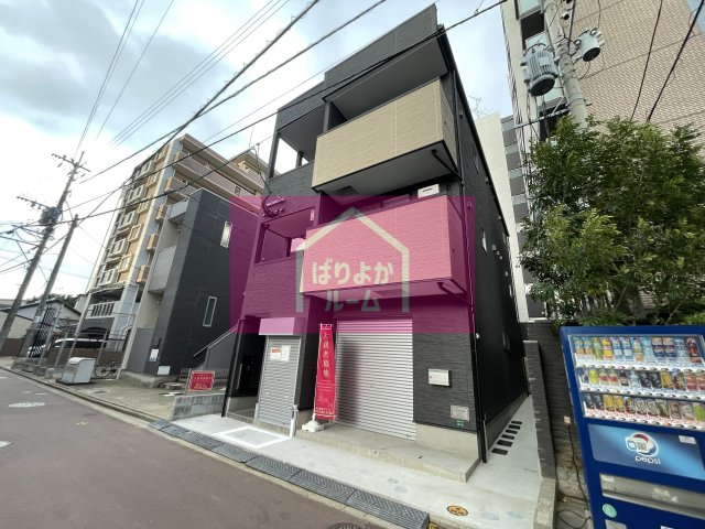 箱崎エリアの新築1F店舗。人通りは多くない静かな細道に位置しており、